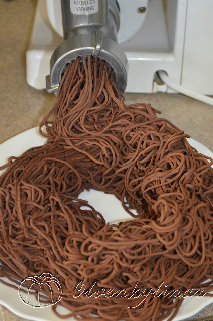 Я скористалася першим варіантом. Пропустила все тісто через мясорубку, і тоді з шоколадного фаршу акуратно формувала гнізда.